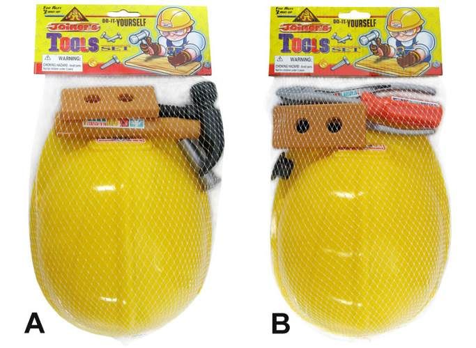 Sada nářadí s přilbou a + nářadí. V síťce.