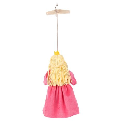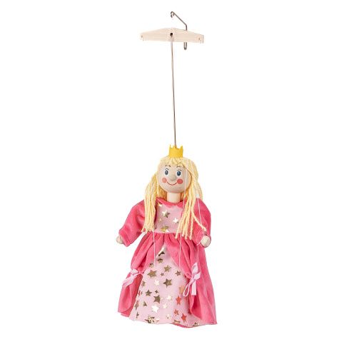 Dřevěná loutka s jednoduchým vodícím křížem, umožňujícím snadné ovládání pro děti i dospělé.