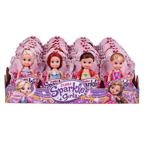 28 cm velká princezna Sparkle Girlz má překrásné šatičky. Panenka je uložená v obalu, který připomíná kornoutek.