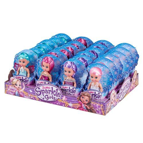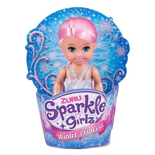12 cm velká zimní princezna Sparkle Girlz má překrásné šatičky. Panenka je uložená v obalu, který připomíná kornoutek.
