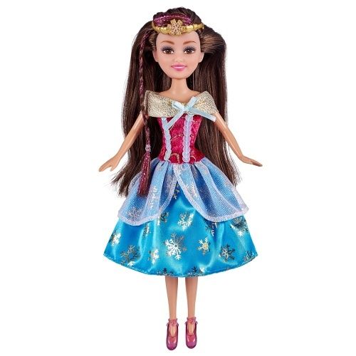 Zimní princezna Sparkle Girlz, která má překrásně barevné šatičky. Je 28 cm veliká. V sadě se nachází hřebínek a čelenka.