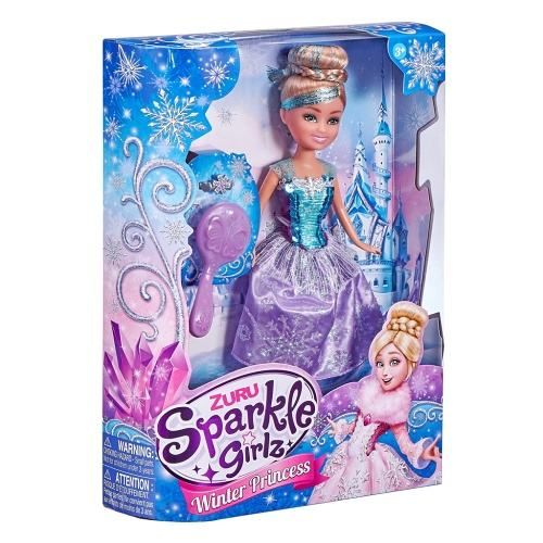 Zimní princezna Sparkle Girlz, která má překrásně barevné šatičky. Je 28 cm veliká. V sadě se nachází hřebínek a čelenka.