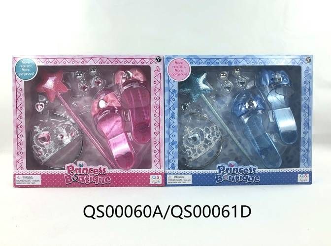 Módní sada pro princezny. Součástí balení je korunka s čelenkou, střevíčky, náušnice, prstýnek a hůlka. Vhodné pro děti od 3 let.
