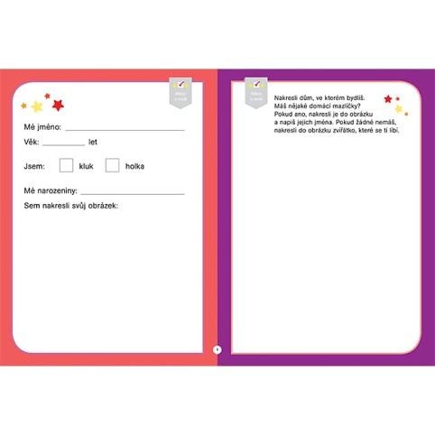 Velký blok obsahuje 120 stran přeškolních a školních aktivit a stíratelnou tabuli k procvičování psaní písmen a čísel.