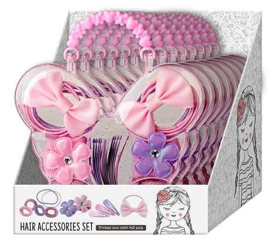 Sada příslušenství Tiny Boss Hair – motýlek obsahuje široký výběr vlasových doplňků v krabičce ve tvaru motýla, krabičku si můžeš s sebou vzít všude na cesty. Obsahuje 12 barevných sponek do vlasů, 2 gumičky s mašlí, 2 gumičky s kytičkou, 6 slabých barevných sponek , 4 normální gumičky a 14 tlustých barevných sponek.,