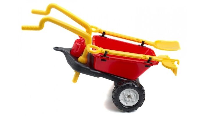 lze připojit madla. Součástí přívěsu je i lopata, hrávě a konvička.