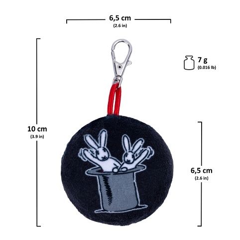 Kulatý textilní přívěsek na kovové karabince s potiskem Boba a Bobka (Králíci z klobouku).