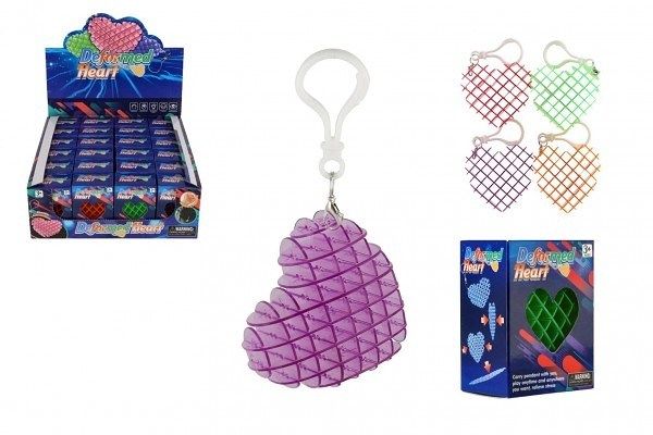 Přívěsek fidget srdce měnící tvar antistresový plast 6cm 4 barvy v krabičce 6x6,5cm