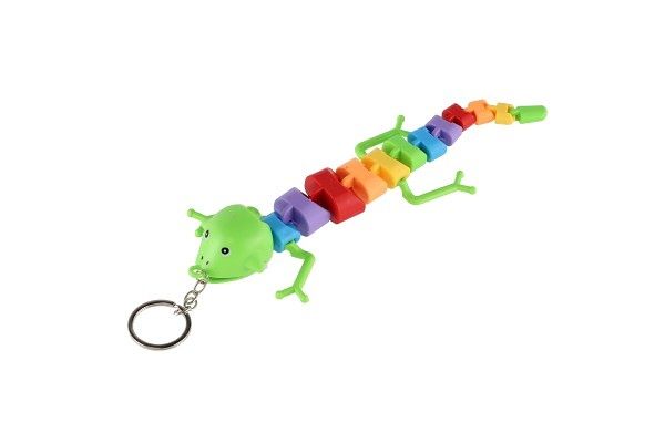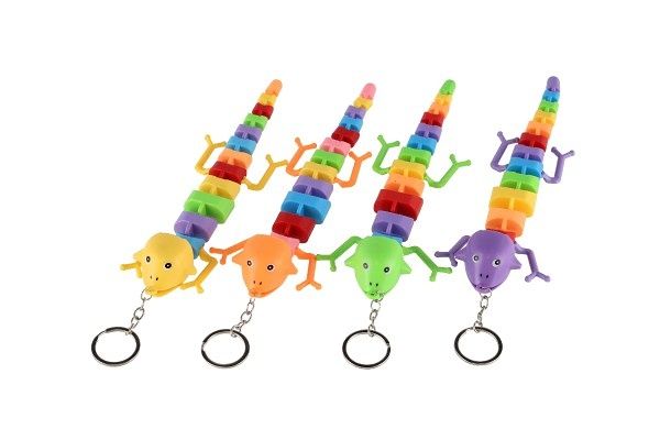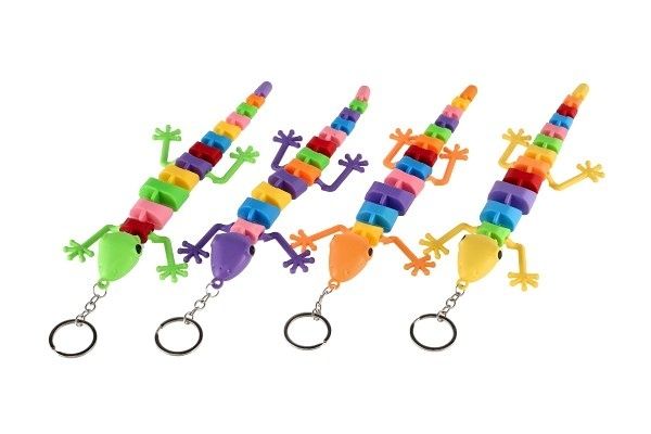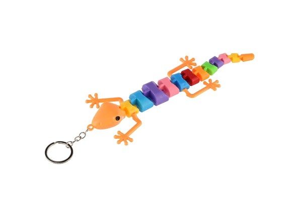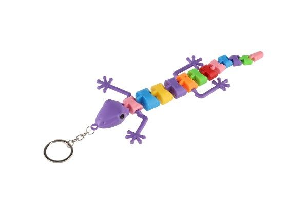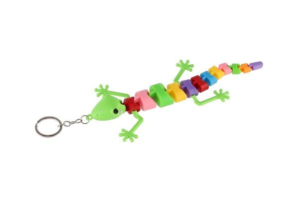 Parádní klíčenka nebo přívěsek na batoh ve tvaru ještěra. Po zmáčknutí tlačítka na obličeji začne v tlamě ještěra blikat. Ještěr je plastový s pohyblivým tělem, na baterie 2 x LR41, které jsou vložené.