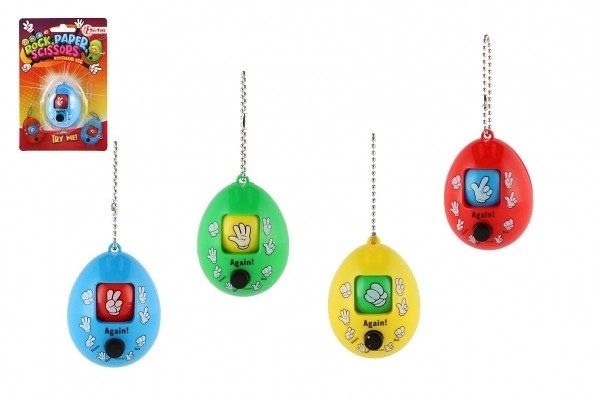 Přívěsek/klíčenka vejce hra kámen, nůžky, papír plast 5cm 4 barvy na kartě