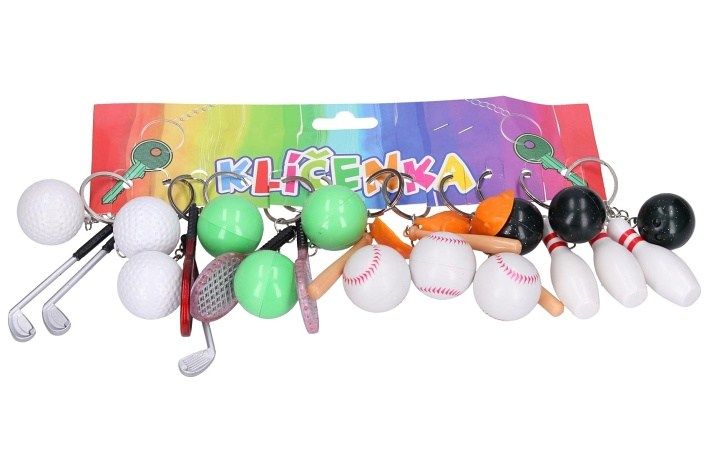 Přívěsek na klíče/Klíčenka sport kov/plast 11cm mix druhů 12ks na kartě