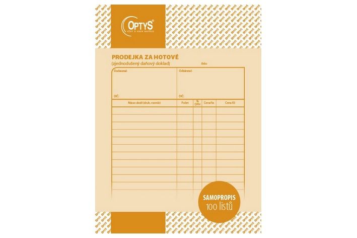 - PAPÍRNICTVÍ / TISKOPISY / ÚČETNÍ A DAŇOVÉ DOKLADY / Prodejky / A5 / OPTYS