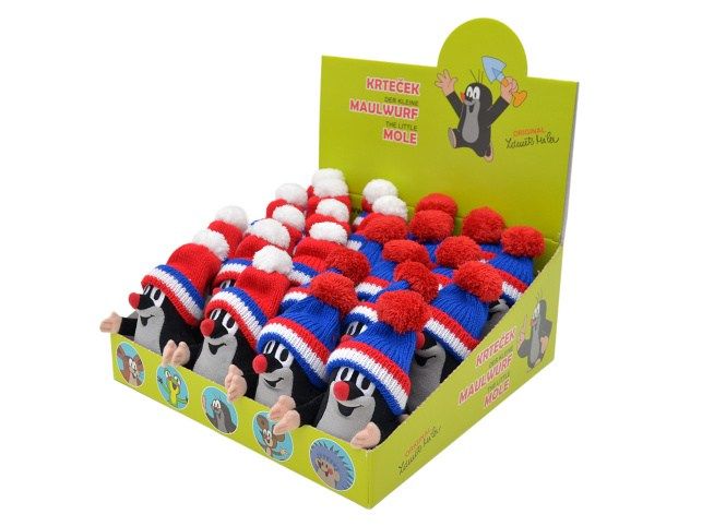 Prodejní box 16 ks, Krtek sedící 14 cm kulich trikolora, plyšová hračka