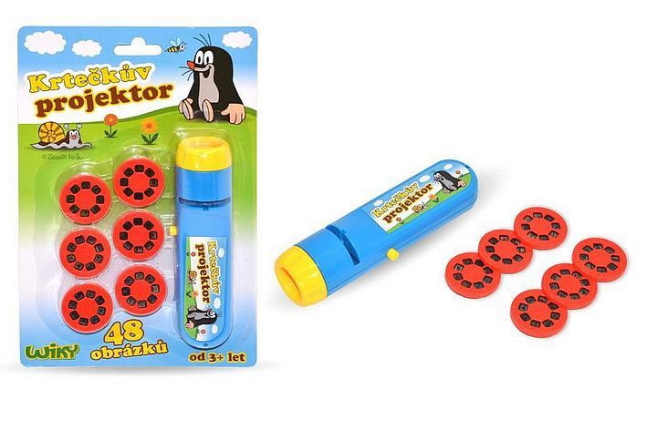 Projektor krtek. Velikost 13,5 cm. Obsahuje 48 obrázků.