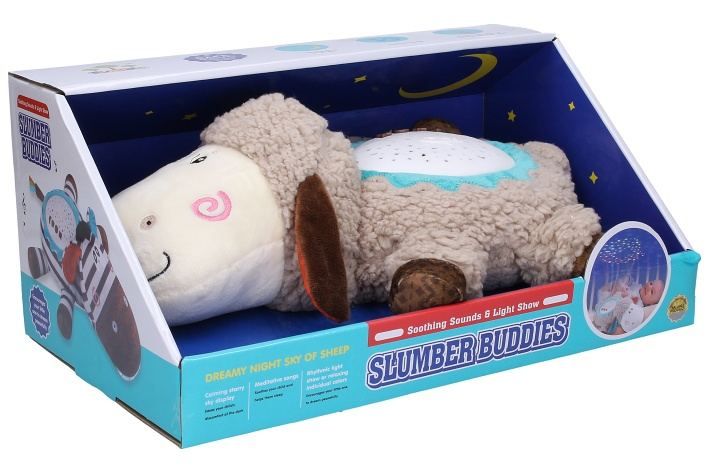 Projektor ovečka s hudbou. Velikost 35 cm. Baterie 3xAAA nejsou součástí. Tlačítko on/off, ovládání hlasitosti, světelná projekce noční oblohy, melodie.