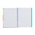 Projektová kniha je praktický kroužkový blok rozdělený do čtyř částí, které vám pomohou udržet si ve věcech přehled. Celkem obsahuje 100 listů, tři sekce jsou linkované (3× 25 listů) a jedna čtverečkovaná (1× 25 listů). Mezi jednotlivými částmi najdete tři barevné rozřazovače z pevného polypropylenu, díky kterým rychle najdete to, co právě potřebujete. Listy jsou perforované, takže je snadno a čistě odtrhnete, a zároveň mají čtyřdírové děrování pro založení do pořadače. Odolná polypropylenová obálka chrání obsah před poškozením, ať už blok nosíte každý den v batohu, nebo ho používáte v kanceláři. Projektová kniha se skvěle hodí pro studenty, kteří chtějí mít všechny předměty přehledně pohromadě, i pro všechny, kdo pracují na víc věcech najednou a potřebují v poznámkách systém.