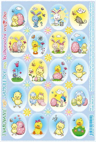 Prolisované velikonoční samolepky - vajíčkoNávod: Vařené vajíčko má mít pokojovou teplotu a suchý povrch. Opatrně odlepte oválek a nalepujte postupným přitláčením od středu až k násekům. Veselé velikonoce