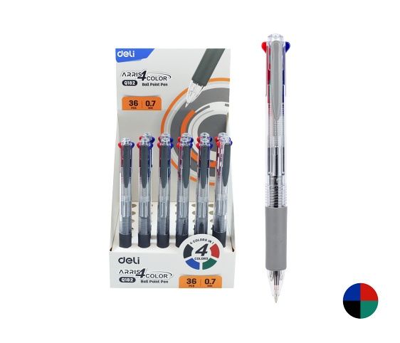 4 barvy v jedné propisce (červená, modrá, zelená, černá)- šířka stopy 0,7mm- stiskací mechanismus