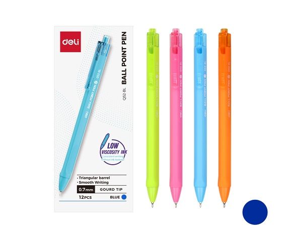 Tenký kuličkový hrot- šíře stopy: 0,7mm- barva náplně: modrá- hladké psaní- ergonomický úchop- inkoust s nízkou viskozitou- stiskací mechanismus