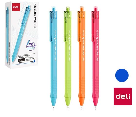 Tenký kuličkový hrot- šíře stopy: 0,7mm- barva náplně: modrá- hladké psaní- ergonomický úchop- inkoust s nízkou viskozitou- stiskací mechanismus
