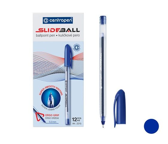 Kuličkový hrot- šíře stopy: 0,3mm- hladké psaní- inkoust s nízkou viskozitou- barva náplně: modrá- vršek s klipem