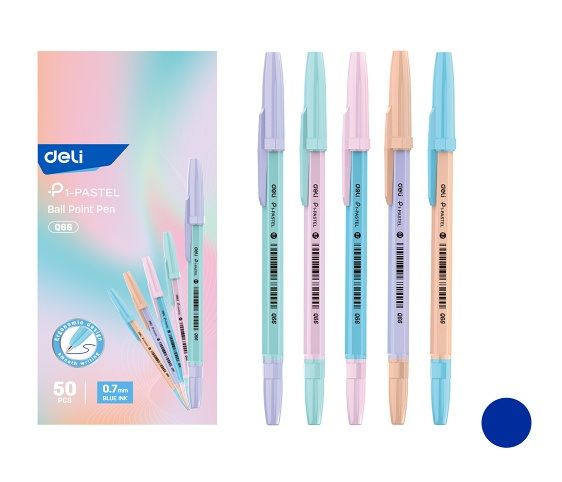 Kuličkový hrot- šíře stopy: 0,7mm- hladké psaní- inkoust s nízkou viskozitou- barva náplně: modrá- vršek s klipem