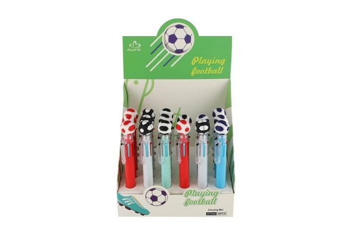Nápaditá propiska s motivem fotbalu prostě baví! Propiska s fotbalovým míčem zkrátka nesmí chybět v žádném penálu ani v žádném dětském šuplíku. Uvnitř se ukrývá 6 barevných tuh, které lze libovolně měnit. Přepínání mezi barvami je velmi snadné, stačí stlačit novou barvu. S touto propiskou si děti užijí spoustu zábavy, kreslení je bude bavit, navíc ji mohou využít jak ve škole, tak doma.