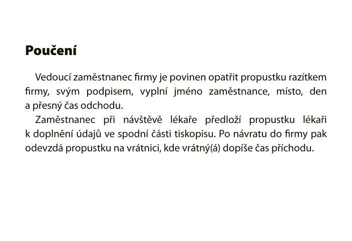 - PAPÍRNICTVÍ / TISKOPISY / MZDOVÉ A PERSONÁLNÍ / Propustky