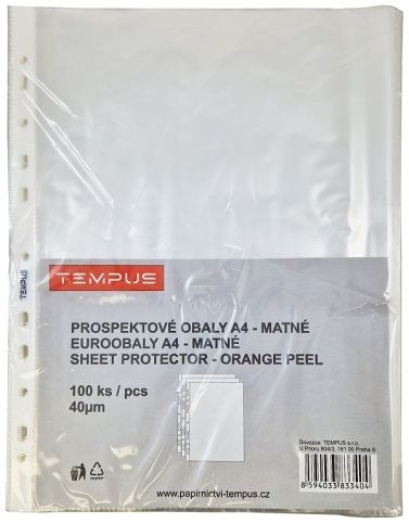 - nejžádanější provedení závěsných obalů - kvalitní prospektové obaly s otvorem s hora - formát A4 - matný krupičkový povrch - EURO děrování - ideální pro dlouhodobou archivaci dokumentů = nehrozí nebezpečí roztržení obalu - balení: 100 ks