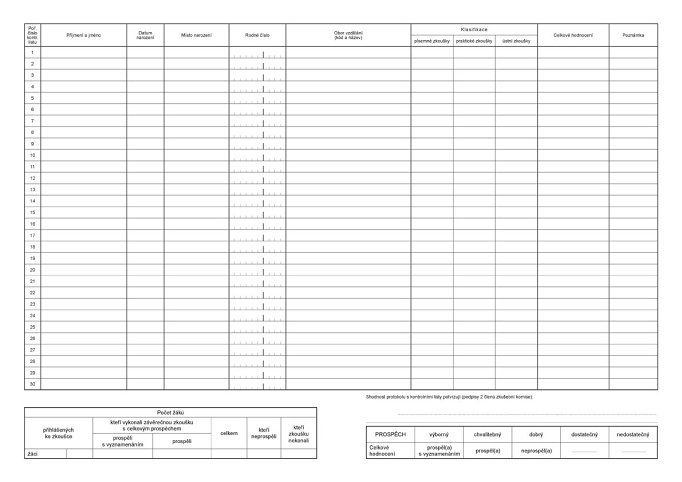 Protokol o závěrečných zkouškách žáků - na třídu