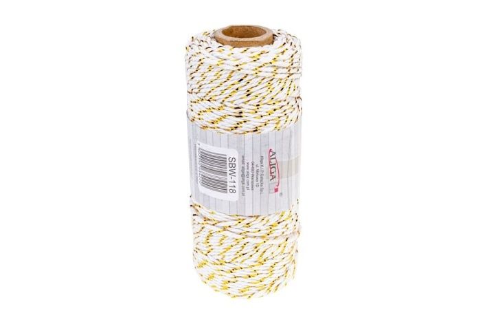Provázek bavlněný bílý se zlatou nitkou 3 mm 100 m
