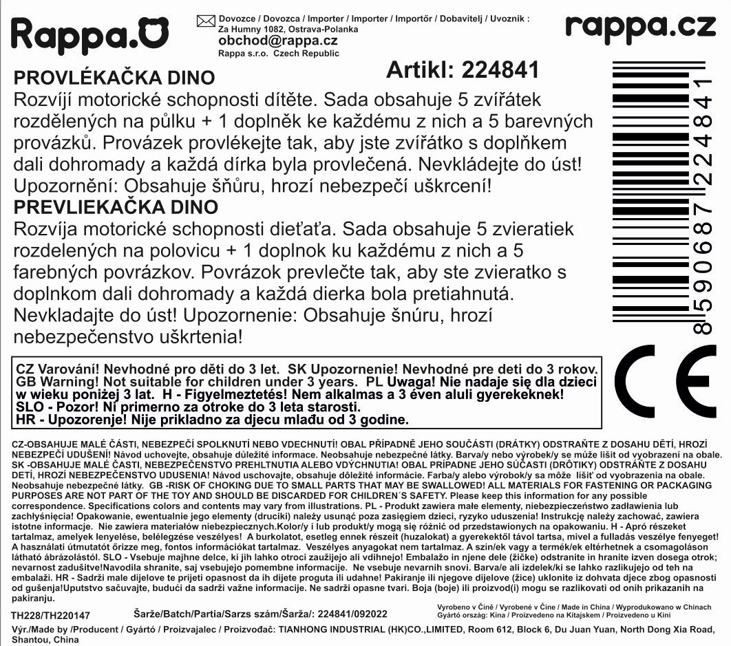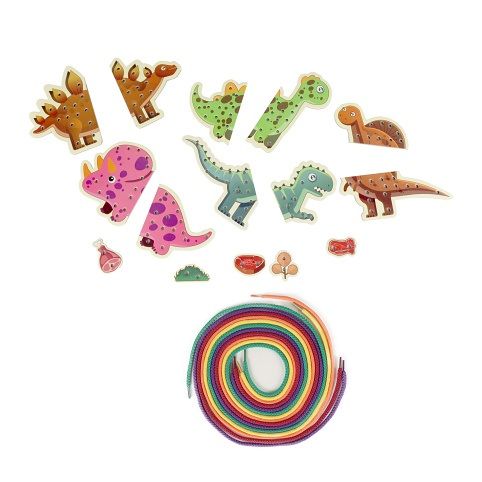 Dinosauří provlékačka nabízí spoustu kreativní zábavy. S pomocí přiložených různobarevných tkaniček si mohou děti provlékat dinosaury. Balení tvoří 5 provlékacích obrázků dinosaurů a 5 barevných tkaniček. S těmito zábavnými provlékačkami si určitě báječně vyhraješ! Rozvíjí myšlení a kreativitu.