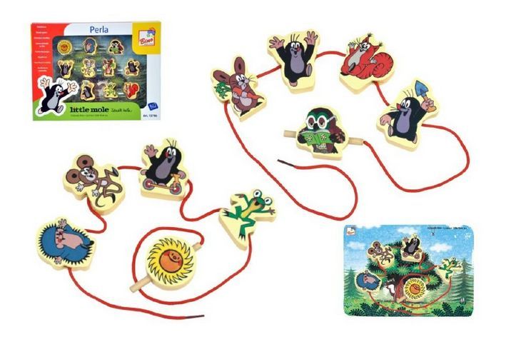 Provlékačka zvířátka Krtek dřevo 10ks v krabici. Dřevěné provlékání Krtek je skvělou zábavou pro děti od 2let.