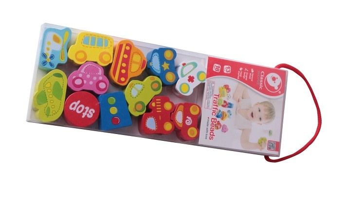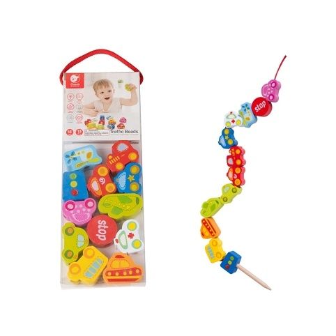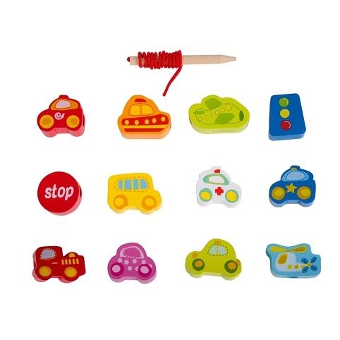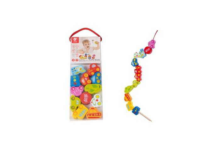 Barevná provlékačka s motivy autíček, letadel a semaforů potěší každého malého fanouška dopravy. Dřevěné dílky se snadno navlékají na šňůrku díky velkým otvorům a pomáhají dětem rozvíjet jemnou motoriku, trpělivost a představivost. Sada obsahuje 13 veselých tvarů, které lze využít i k poznávání barev nebo při hraní na dopravu.