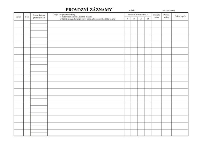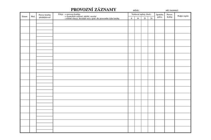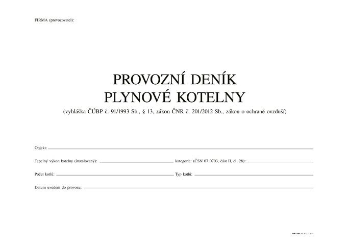 Provozní deník plynové kotelny, A4, 28 listů, OPTYS 1241