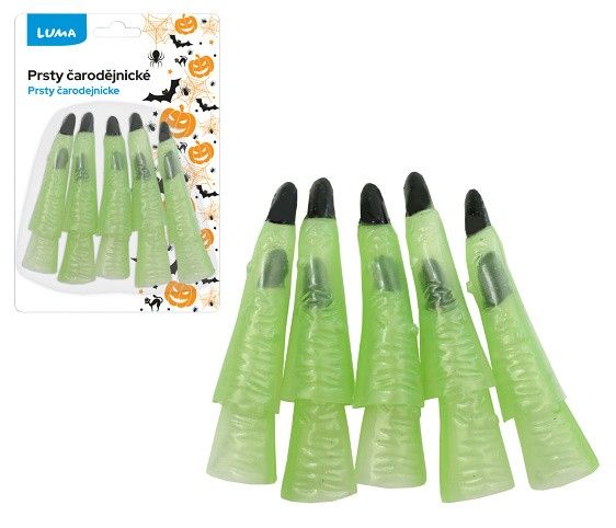 Čarodějnické prsty- svítící ve tmě- materiál: PVCUPOZORNĚNÍ:Není hračka. Určeno pro dospělé osoby, vhodné na párty a karnevaly. Není vyrobeno z latexu. Nepoužívejte výrobek v blízkosti ohně.