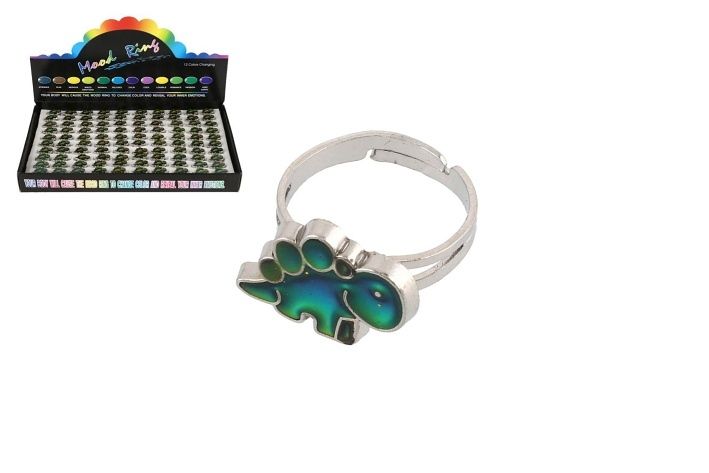 Prstýnek dinosaurus měnící barvu dle teploty nastavitelný kovový