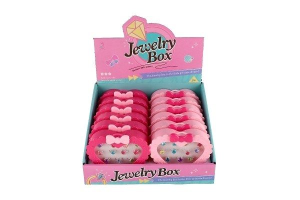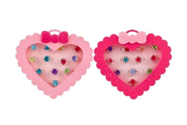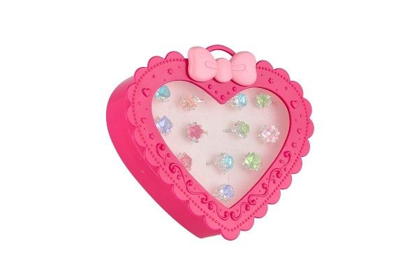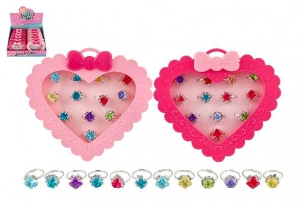 Prstýnek/Prstýnky s kamínkem kov/plast 12ks nast. velikost 2 barvy v krabičce tvar srdce