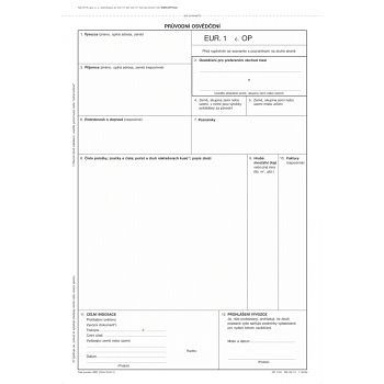Průvodní osvědčení EUR 1 A4, očíslované, 1 + 2 listy