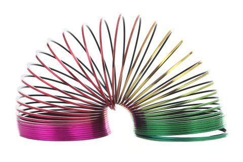 Plastová pružina v krabičce. Metalové duhové barvy. Rozměr krabičky cca 8 x 7 x 7 cm. Věk 3+