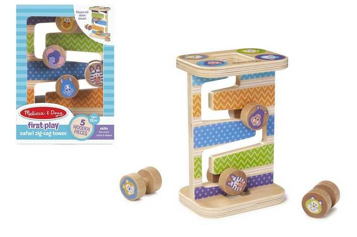 Zábavné "cikcak" hraní s touto robustní dřevěnou věží a čtyřmi kusy, které se otáčejí!