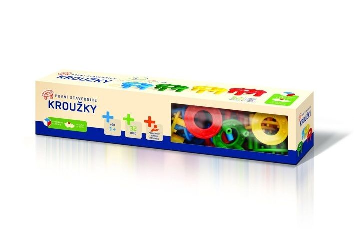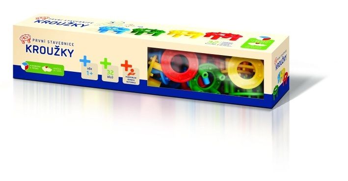 Stavebnice určena pro ty nejmenší děti - pomáhá procvičovat cit v prstíkách a poznávat základní barvy. Balení obsahuje 32 dílků ve čtyřech barvách. Všechny stavebnice Kroužky jsou vzájemně plně kompatibilní, takže ji můžete neustále rozšiřovat a doplňovat o nové dílky.