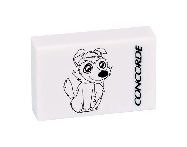 Bílá pryž s motivem Volfíka vhodná do školy i kanceláře. Sada 2 kusů na blistru. Rozměr 1 kusu: 3,3cm x 2,2cm x 0,7cm.