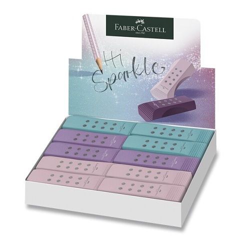 Pryž Faber-Castell RollOn Sparkle obdélníkového tvaru vhodná pro ploché, přesné a čisté mazání stopy grafitové tužky. Má boční úchopové zóny pro optimální úchop při mazání.