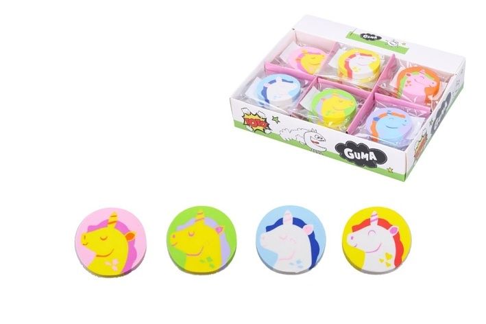 Mazací pryž, guma s obrázkem Jednorožce - nezbytná součást každého školáka, nebo kanceláře. Varování: Nevhodné pro děti do 3 let. Nebezpečí vdechnutí a spolknutí malých částic. Uvedená cena je za 1ks