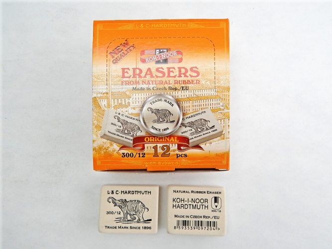 Pryž měkká 0300 12. Klasická stěrací pryž vyrobená na přírodní bázi, bez přídavků plastů a ftalátů. Tradiční pryž žádaná zákazníky a dodávaná na trh pod historickou značkou již přes 120 let. Měkká pryž vhodná pro stírání grafitových čar v rozmezí tvrdostí 3B-3H