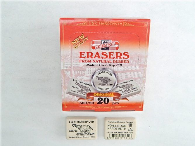 Pryž měkká 0300 20. Klasická stěrací pryž vyrobená na přírodní bázi, bez přídavků plastů a ftalátů. Tradiční pryž žádaná zákazníky a dodávaná na trh pod historickou značkou již přes 120 let. Měkká pryž vhodná pro stírání grafitových čar v rozmezí tvrdostí 3B-3H