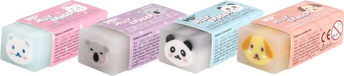 Guma na tužku. S ochranným kartonovým páskem. Průhledná guma s centrálním motivem. Pastelové barvy. Rozměry gumy: 22 x 51 x 17 mm.