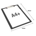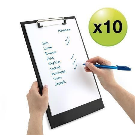 Extra pevný klip s vysokou kapacitou umožňuje bezpečné uchycení papíru, zatímco potažený povrch poskytuje hladkou plochu pro psaní.