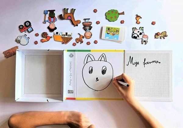 Všestranná hra, která povzbudí děti od 4 do 8 let ke kreativitě, aranžování, kreslení a psaní. Psaní, mazání a skládání magnetických obrázků - vše v jedné sadě. Skvělý trénink psaní písmenek, čísel a spousta volné plochy na malování mazací fixkou a skládání scének z magnetických obrázků. Rozvíjí jemnou motoriku a představivost.
